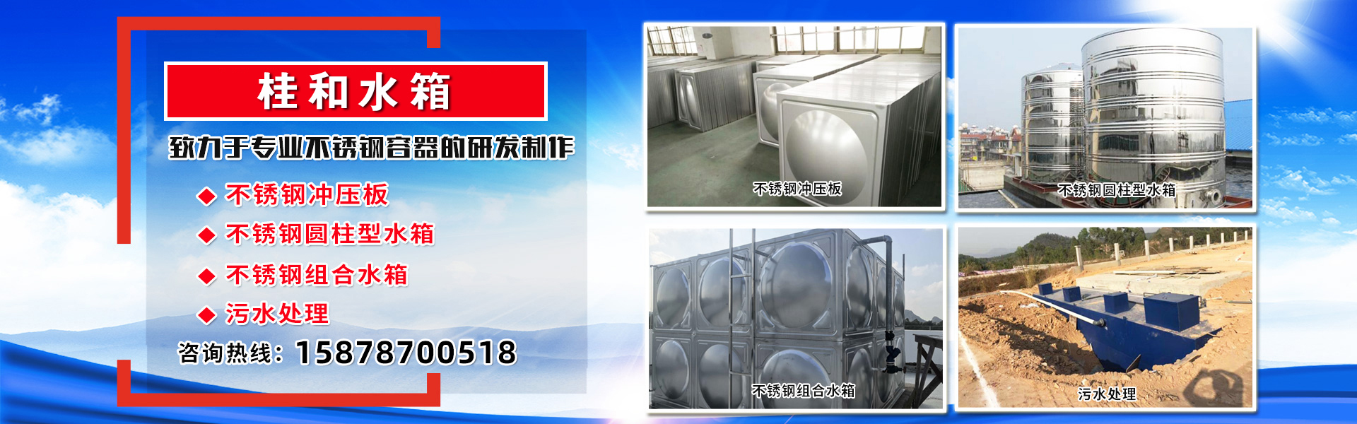 公司長期以來致力于專業不銹鋼容器的研發制作及其代客設計各種規格的不銹鋼水箱產品。采用一流的設備,秉承多年的不銹鋼水箱生產...
